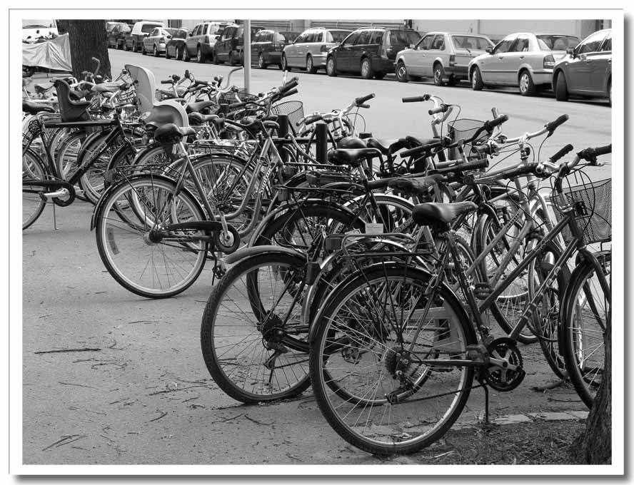 Cyklar i gatan. En är stor, en är liten - lika men olika.